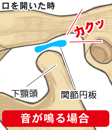 顎関節症とは、咬み合わせなどが原因で「顎が痛い」「カクッと鳴る」「口があけづらい」など顎関節やその周りの組織にあらわれる運動障害のことです。