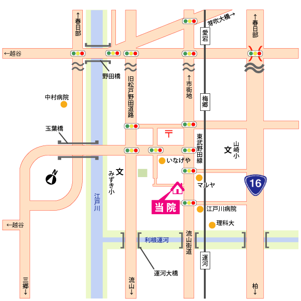 野田市にある歯科医院【のだクローバー歯科】は流山街道沿線で梅郷と運河の間にある歯科です